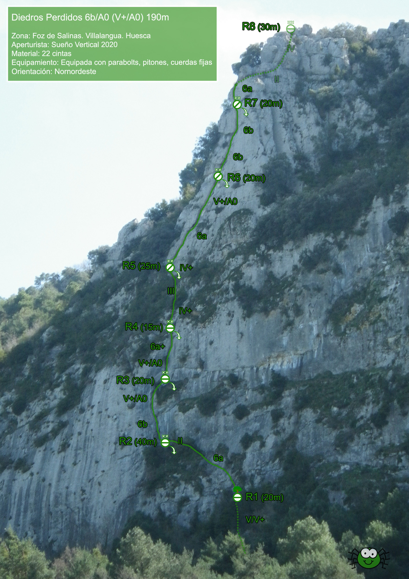 Horario : 40’ aproximación, 2h25’escalada, retorno 50’