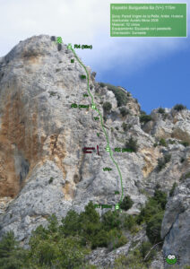 Horario : 50’ aproximación, 2h15’ escalada, bajada 1h