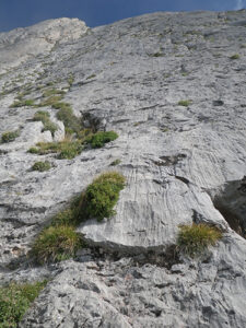 • L4 (V+ – 30m): Nos metemos en un diedro con algo de fisura donde puede que no veamos los seguros. Vuelven a ser pitones que no se ven desde lejos. A medida que avancemos aumentará la dificultad. El final del largo es un tramo de placa que nos llevará hasta la R