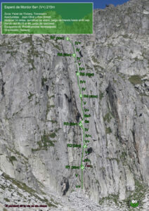 Horario : 1h25’ aproximación, 3h30’ escalada (cordada de tres), 1h45’ retorno