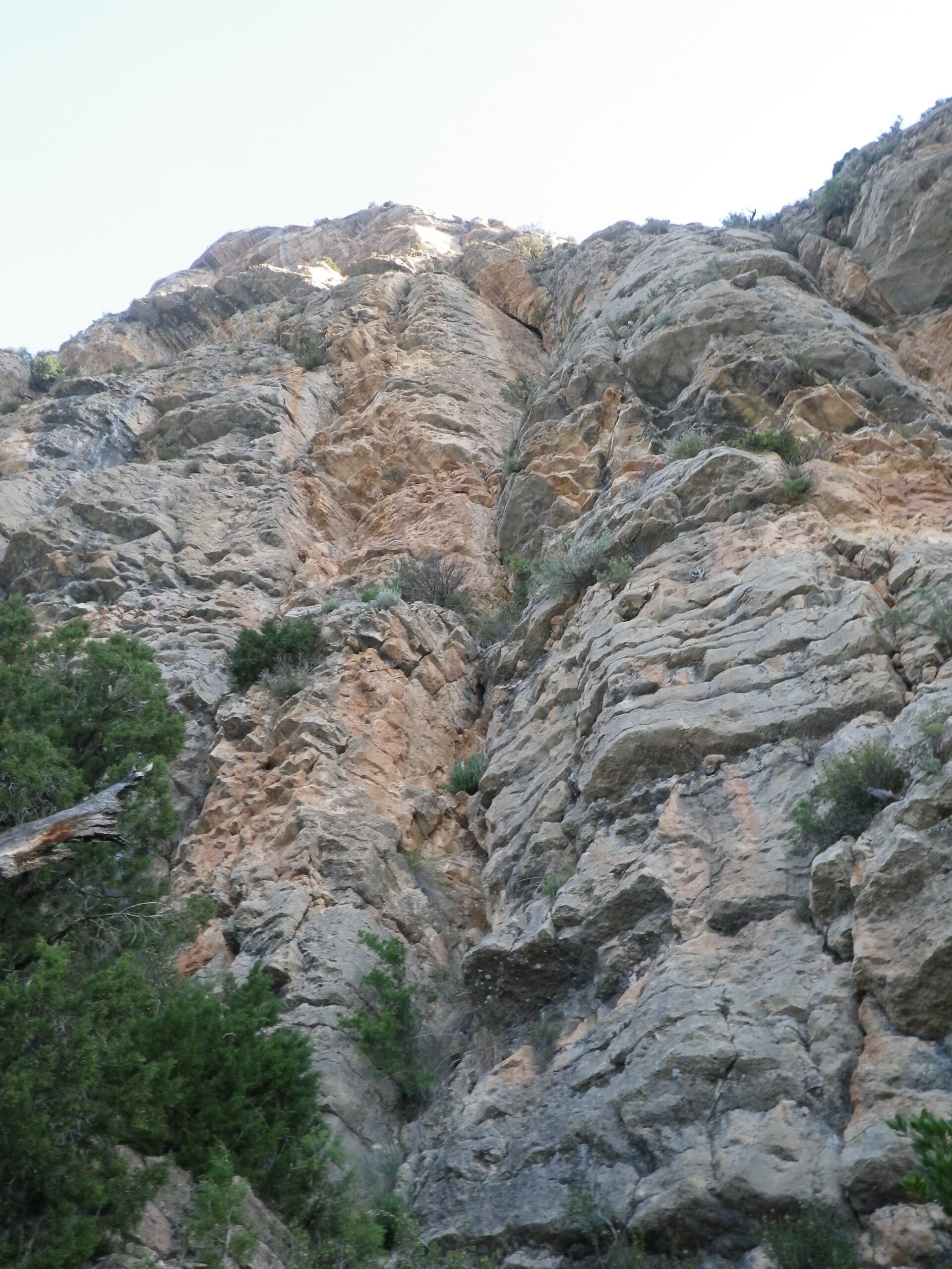 - L6 (III – 35m): Ir hacia la izquierda hasta encontrar la continuación de la vía. No liarse con la Markitos que está al lado y con parabolts. Hay ED y Desliz marcado en la roca y el primer seguro que tendríamos que ver es un puente de roca. Largo de transición por la Feixa dels Espàrrecs y hay un posible escape desde aquí hacia la izquierda u opción de empezar aquí.